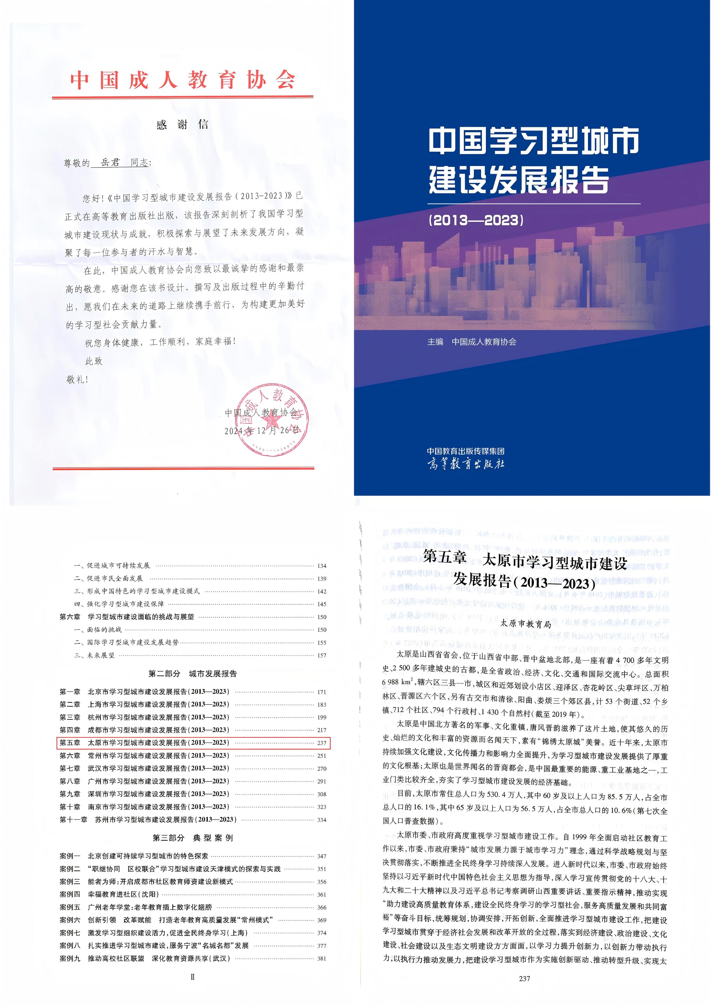 2024年12月,高等教育出版社出版《中国学习型城市建设发展报告(2013-2023)》