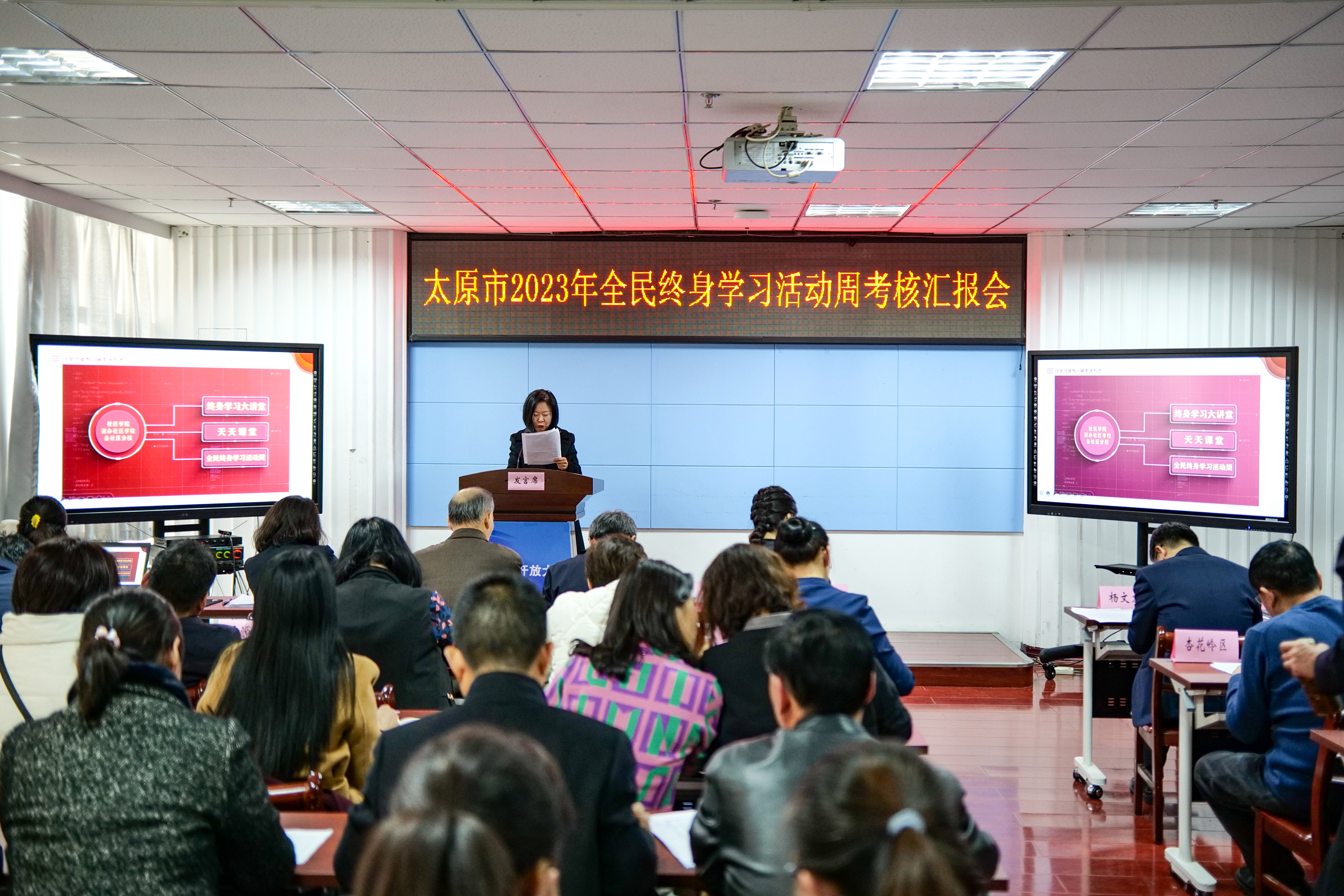 2023年11月,太原市2023年全民终身学习活动周考核汇报会上县区依次作交流汇报
