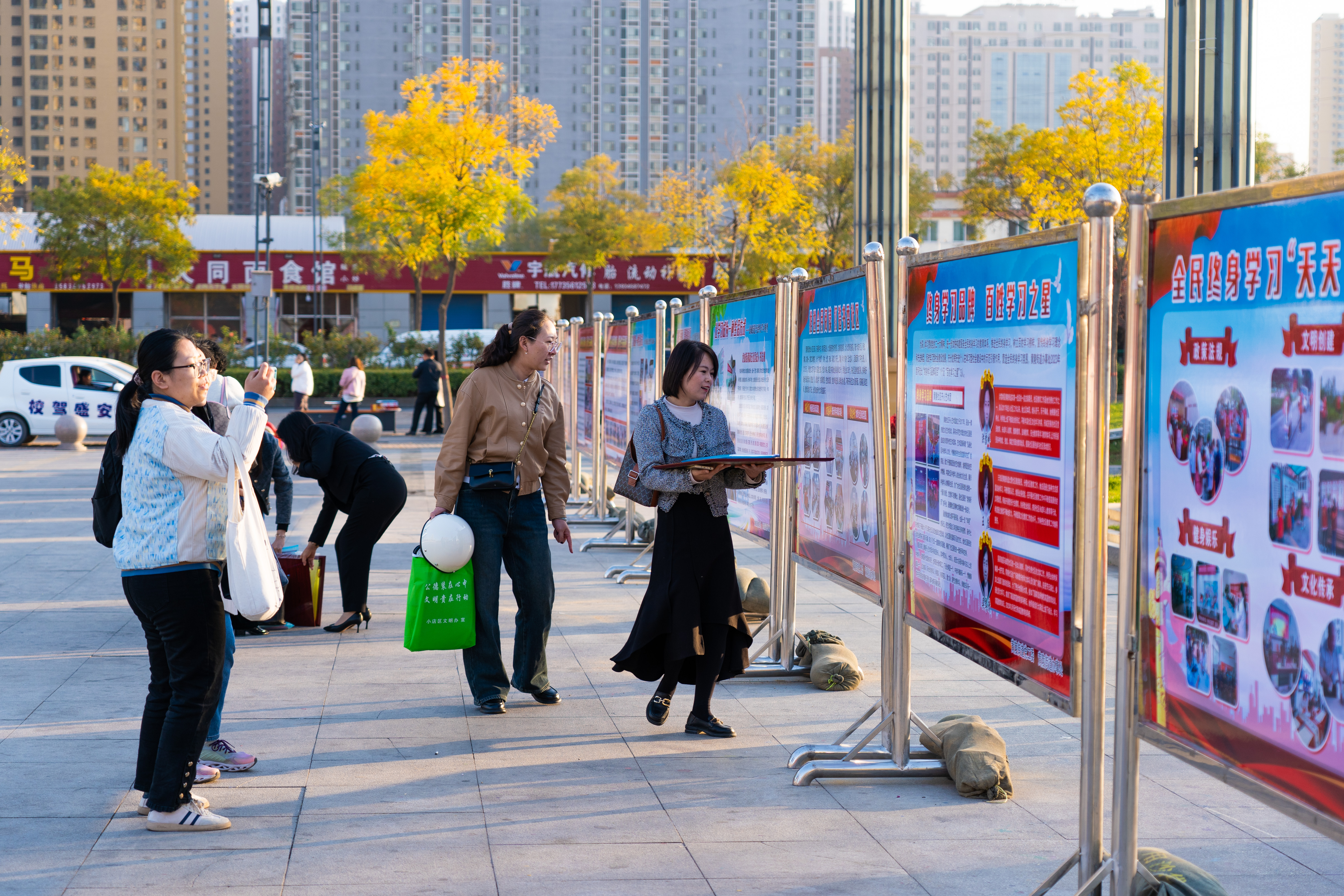 2023年10月,小店区在区新时代文明实践中心举办学习型城区建设成果展,市民驻足观看