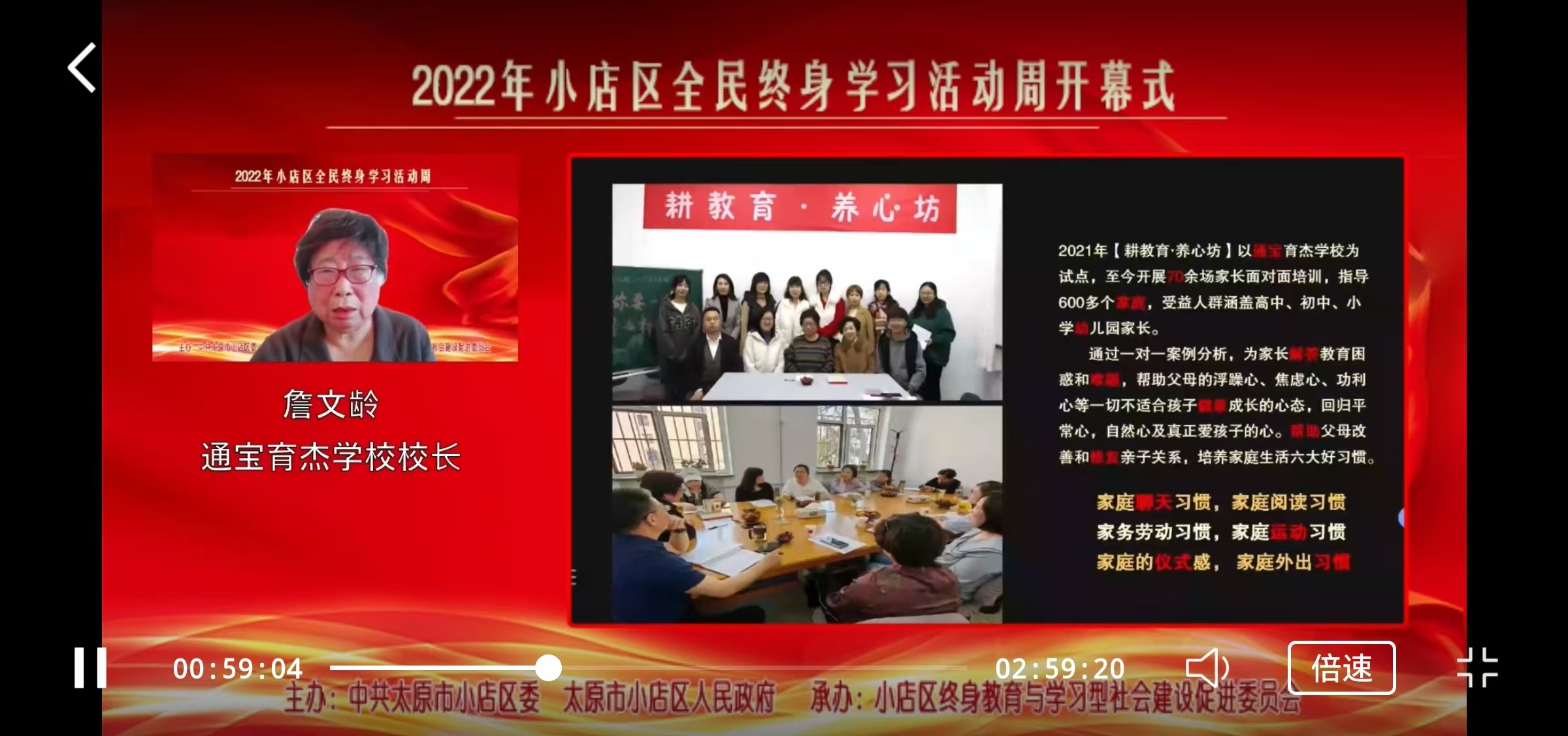 2022年12月,小店区举办全民终身学习活动周开幕式,会上,荣获2022年全国“终身学习品牌项目”的“耕教育,养心坊”品牌负责人作经验介绍