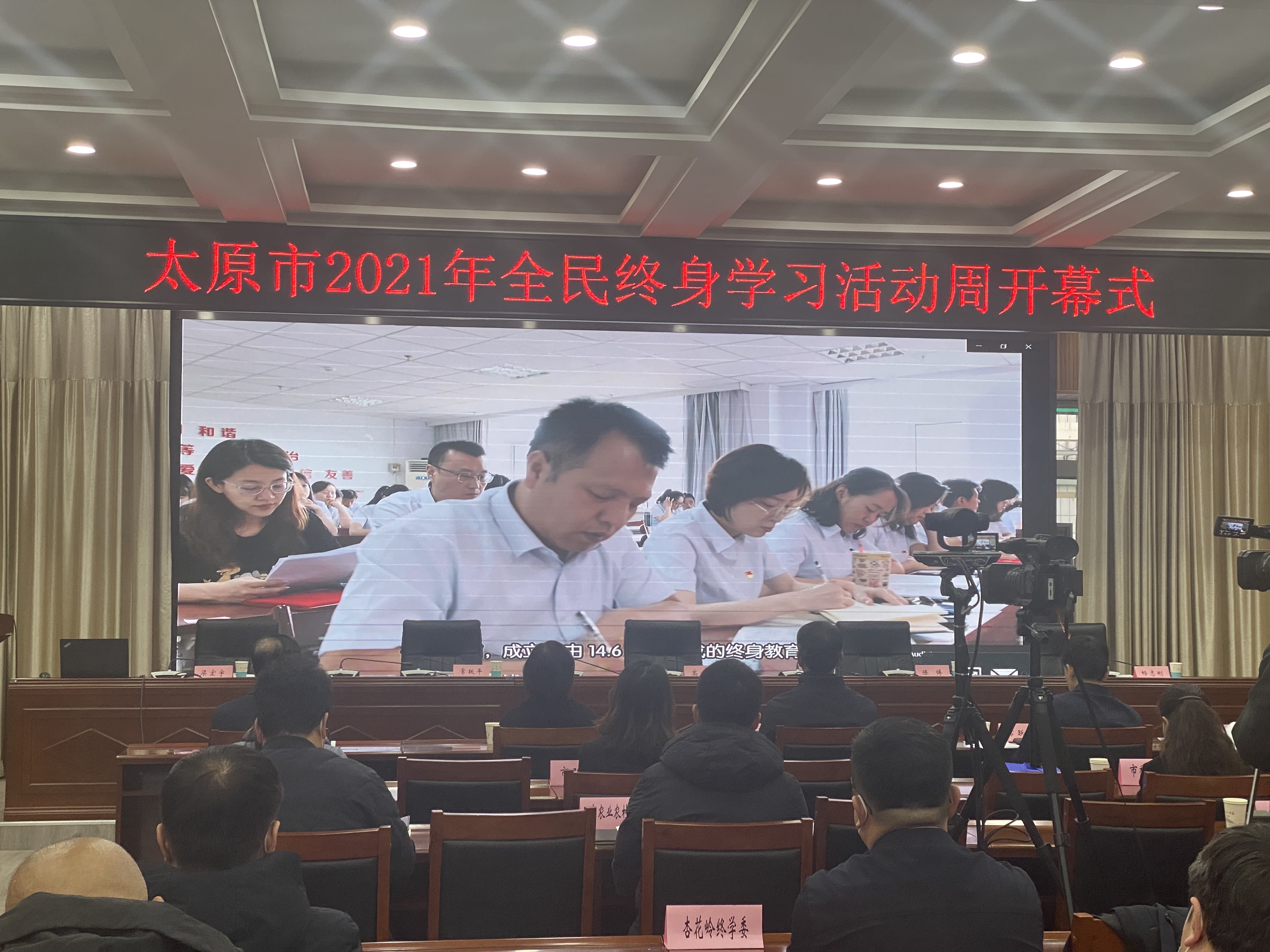 2021年12月,太原市2021年全民终身学习活动周开幕式主会场,现场观看太原市学习型城市建设宣传片